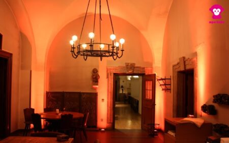 Der Akku Scheinwerfer zur Miete verfügt über viele verschiedene vorkonfigurierte Programme, Farben und Geschwindigkeiten und bietet somit für fast jede Veranstaltung eine schöne passende Beleuchtung. Des weiteren verfügt die Leuchte über den sogenannten Sound-to-Light-Modus (das Gerät zur Miete steuert sich im Takt der Musik).
