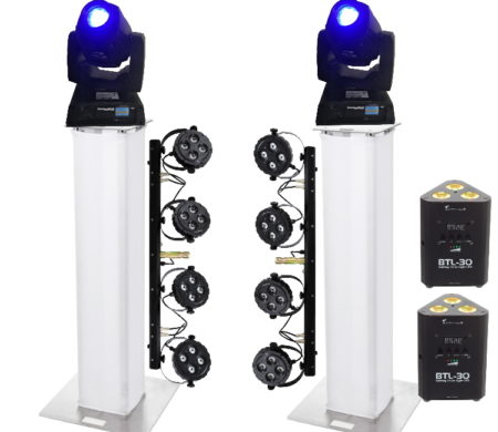 Um die Lichtstrahlen der Movingheads dreidimensional wirken zu lassen empfiehlt sich noch ein Hazer oder Nebelmaschine.