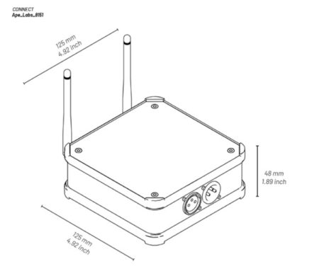 - Wireless DMX Sender und Empfänger zur kabellosen Ansteuerung von Ape Labs Leuchten mit einem DMX Pult oder DMX-Software