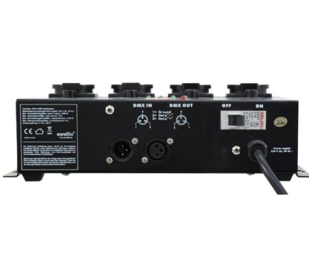 Das 4 Kanal Dimmerpack verfügt über 4 seperate Kanäle, die je mit bis 1150 Watt belastet werden können. So können bspw. auch PAR Scheinwerfer mit 1KW Nennleistung über dieses Dimmerpack per DMX angesteuert werden.