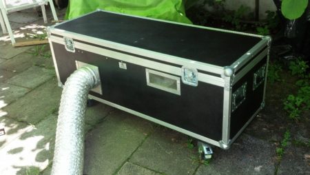 Um erzeugten Nebel zu kühlen, damit dieser auf dem Boden bleibt und nicht aufsteigt ist in die Bodennebelmaschine zum mieten mit einem Kompressor (ähnlich wie in Ihrem Gefrierschrank nur stärker ) mit 1,2kw Leistung ausgerüstet.