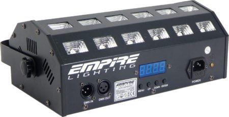 - Strobe Effekt in mehreren Geschwindigkeiten manuell am Gerät oder per DMX einstellbar