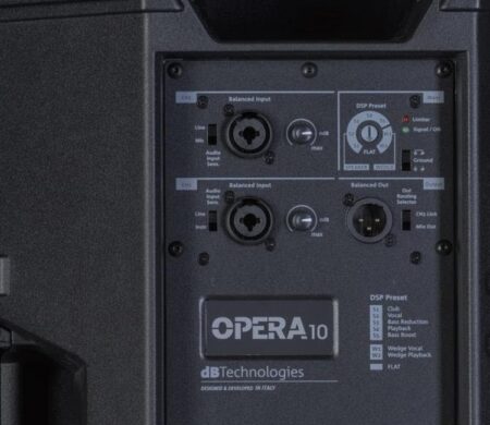 Die dB Technologies Opera 10 bietet dank integriertem DSP acht EQ-Presets für verschiedene Anwendungen, von Sprache bis Bandmusik. Kombibuchsen erlauben den direkten Anschluss von Mikrofonen oder Instrumenten – perfekt für kleine Gigs oder Feiern. Alternativ lässt sich die Box in größere Setups integrieren und liefert sowohl als Hauptlautsprecher als auch als Monitor einen klaren Sound.