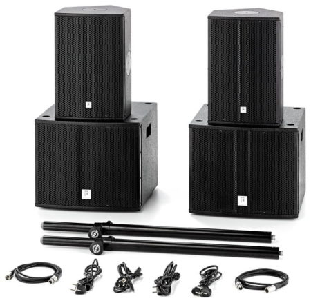 Dieses PA Lautsprechersystem aus unserem PA Verleih ist im Prinzip die etwas kleinere Variante des Tonanlagen-Pakets “Separated“.